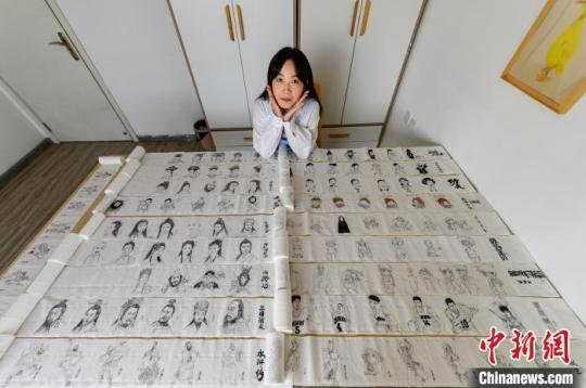 在史钊碧创作的30余卷作品中,四大名著系列是她比较喜欢的作品。“创作《水浒传》中的人物时,先在其他纸上勾勒大致人物形象,再画在卫生纸上。”
