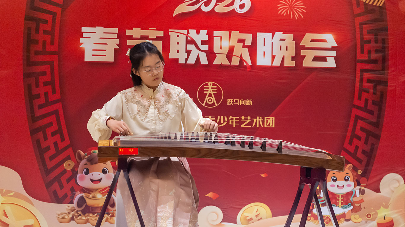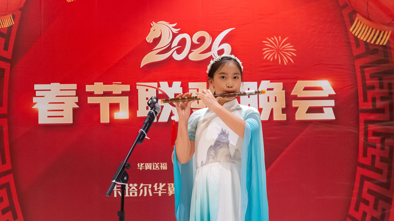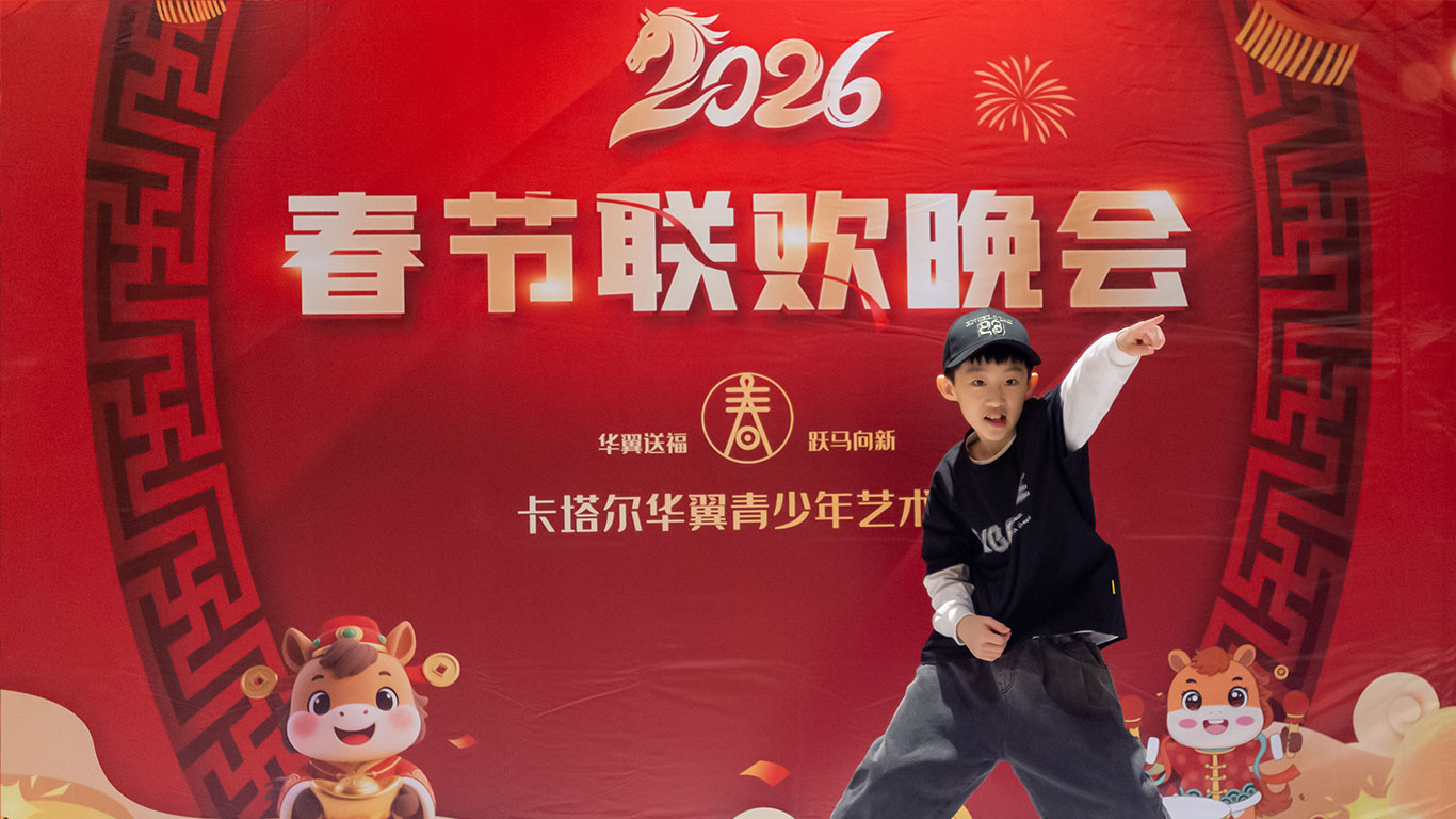 活动分为年度回顾与文艺演出两部分。年会环节展示了艺术团2025年度取得的50项活动成绩,优秀学员及家长代表分别做出发言,分享成长感悟与支持之情。随后的春晚演出在《开门红》的鼓点中拉开序幕,《雪绒花》《Toreador Song》展现国际艺术修养,竹笛《青花瓷》古筝《雨碎江南》与古典舞《琵琶行》演绎了传统国风;一首《稻香》唤起温情回忆,街舞表演更是彰显了海外华裔少年的青春活力。最后,晚会在四重唱《赴约》的动人旋律中圆满落幕。