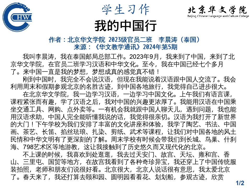 学生习作-我的中国行-北京华文学院 2023级官员二班 李晨涛 (泰国)