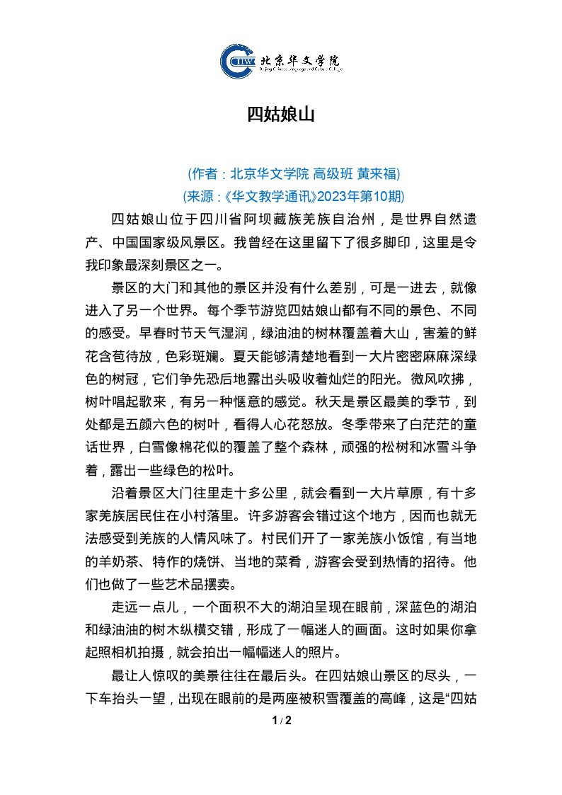 北京华文学院拥有两个校区,可容纳约2000名学生同时在校学习和生活。阜外校区地处北京市中心位置,距天安门广场仅5公里。昌平校区位于北京市昌平区,于2013年3月正式启用,占地总面积近15公顷,建筑面积近7万平方米。学院教学生活设施先进、功能齐全、环境优美、交通便利,校园内绿树成荫的自然气息与中西合璧的建筑风格相融合,是广大华裔青少年和外国学生来华学习中国语言和文化的理想之所。