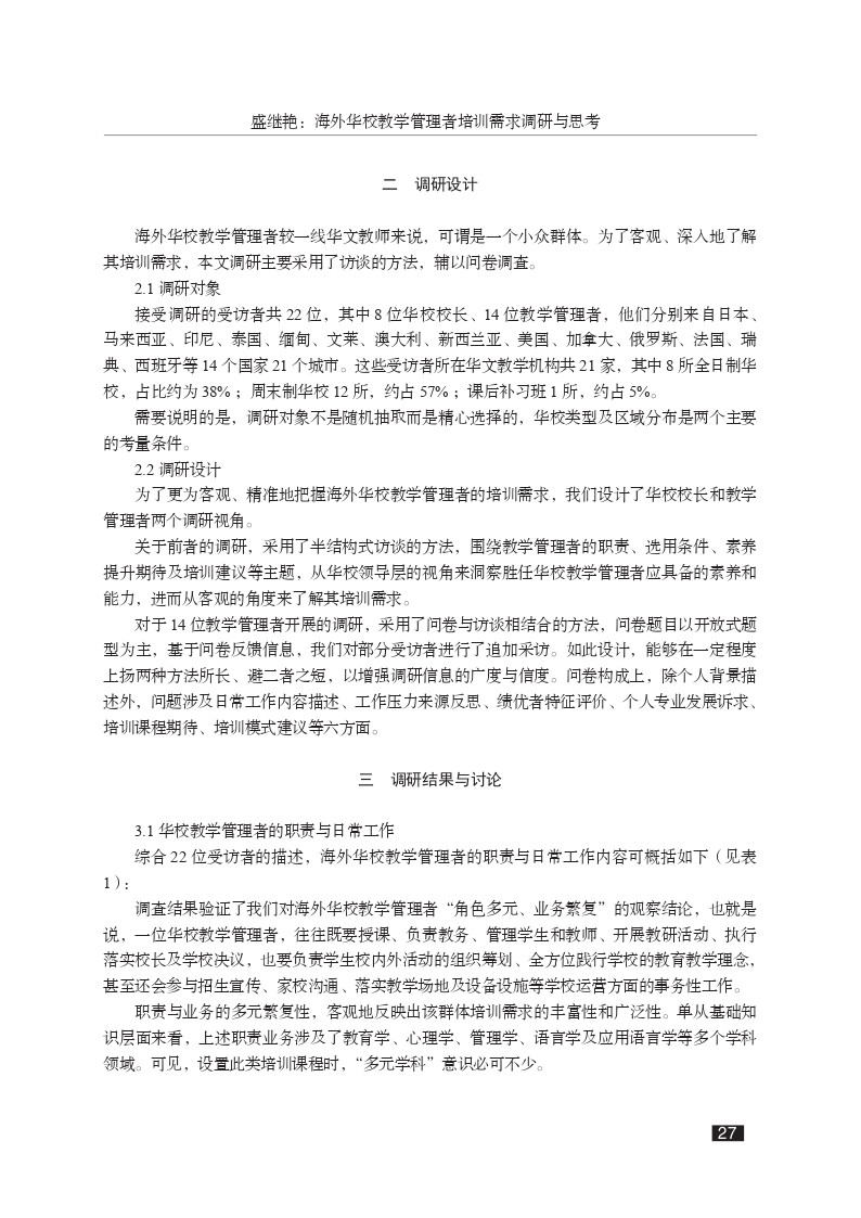 海外华校教学管理者培训需求调研与思考
