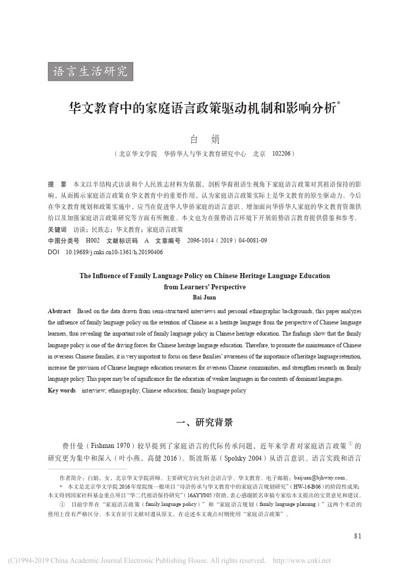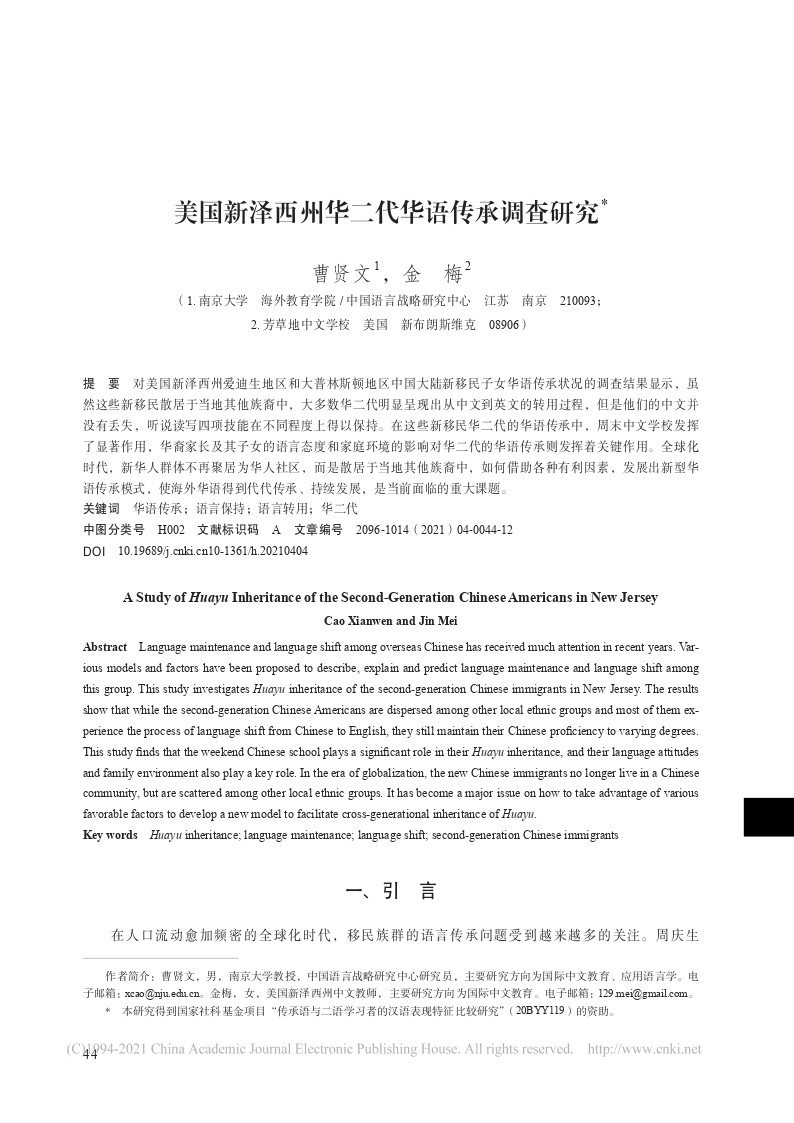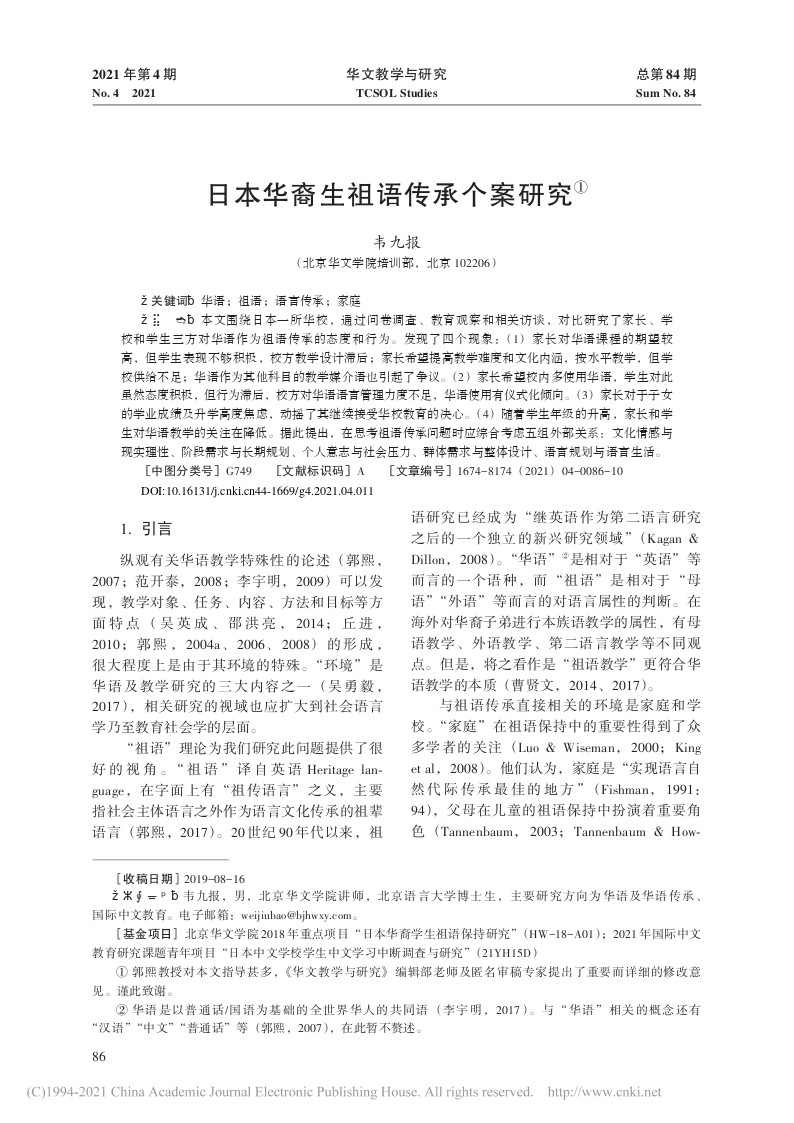 祖语水平保持的影响因素研究——以在日华裔青少年为例