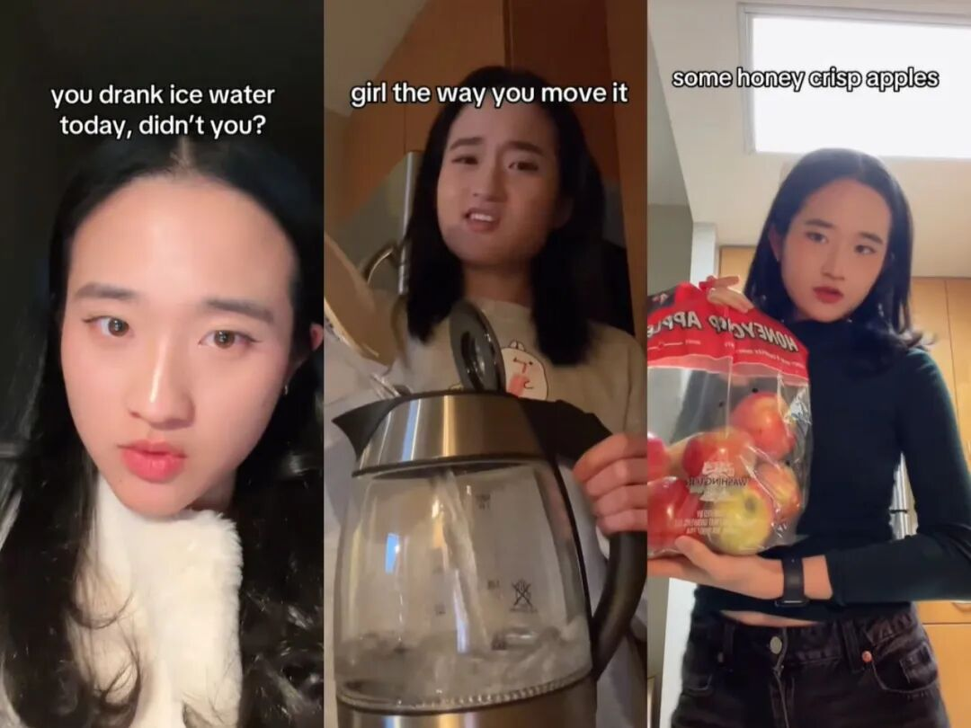 在短视频平台,世界各地网民有模有样地模仿中国人喝热水、煲汤煮粥,并将这些生活方式称为健康美好的东方智慧。(网络截图)