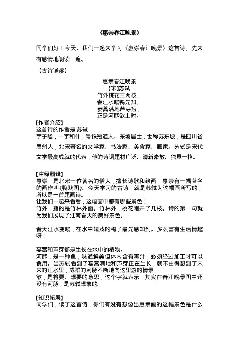惠崇春江晚景