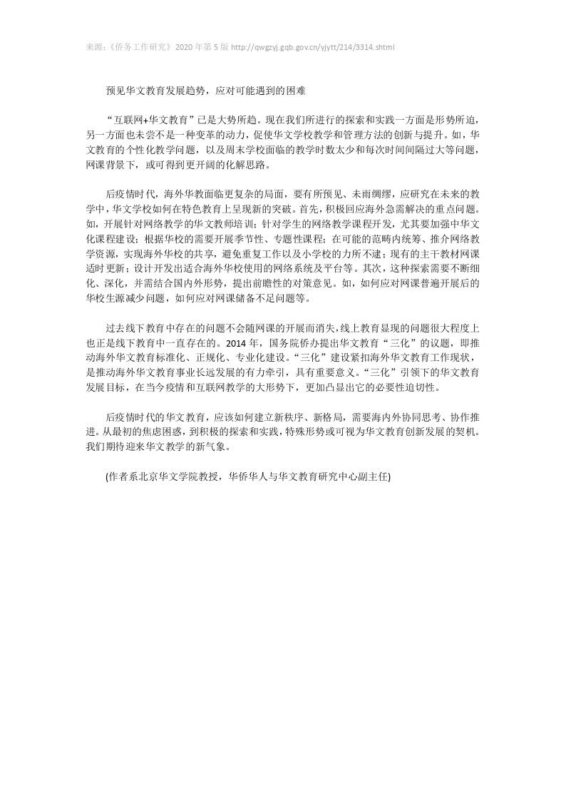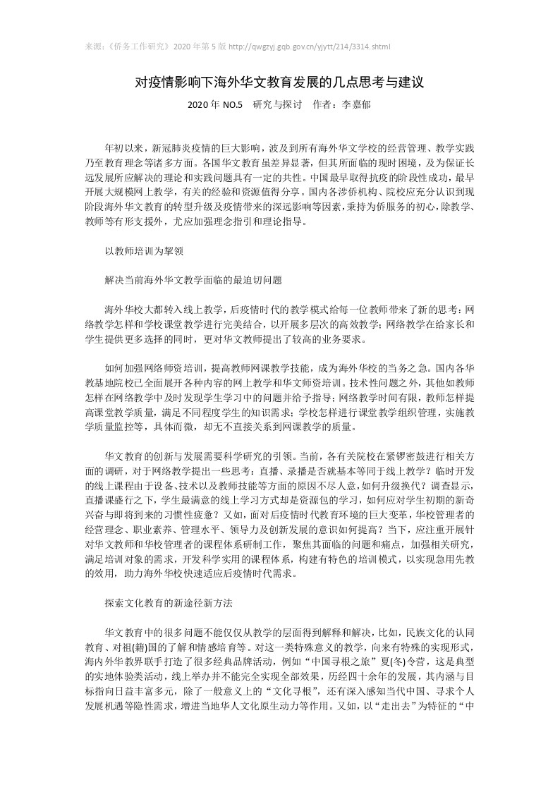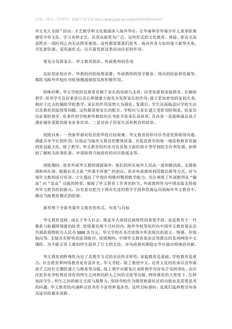 对疫情影响下海外华文教育发展的几点思考与建议